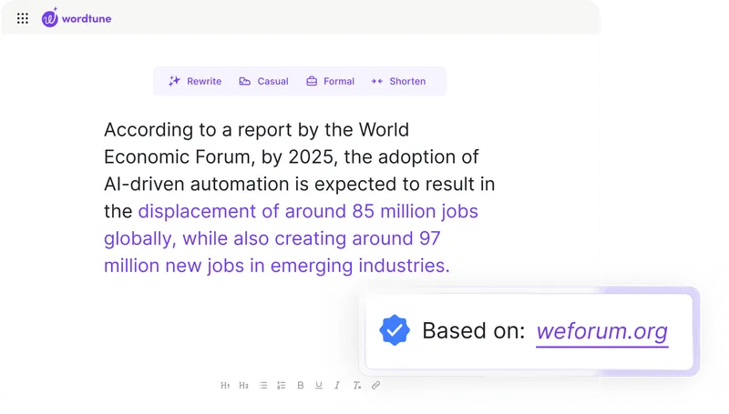 Why settle for generic content? Choose an AI writing generator that allows you to create and edit content as well as continue writing for you based on your unique context.