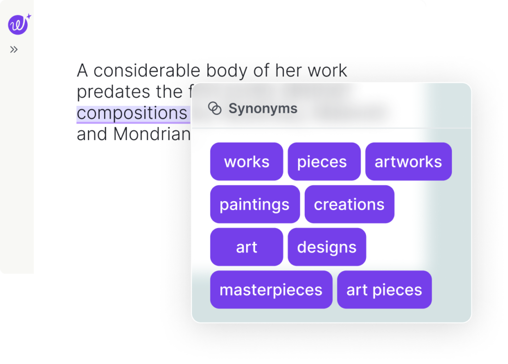 Use Wordtune’s Rewrite feature to discover synonyms and add variety to your writing. Simply highlight a word and click Rewrite to receive a list of suggested synonyms to choose from.