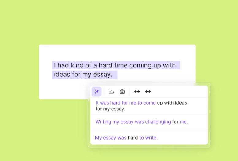 Yes. Wordtune has a smart synonym tool that allows you to highlight a single word and get a list of optional synonyms or substitutions. It also works on phrases, so you’re not just limited to single words.